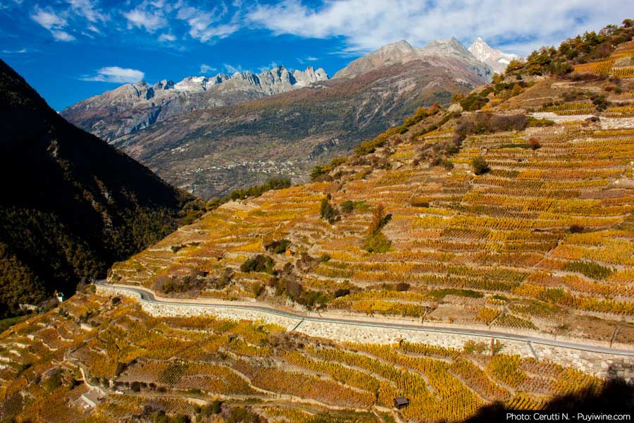 瑞士瓦莱州 - 秋季葡萄园风景